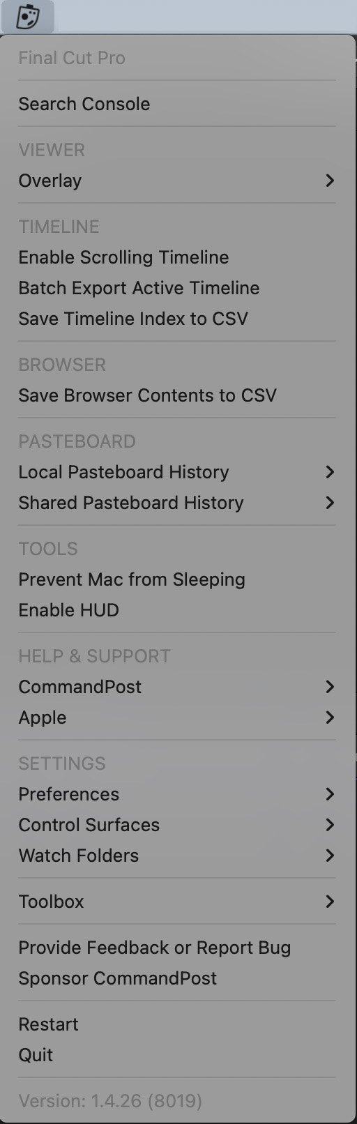 CommandPost is a “free and open source macOS application that makes your post production and editing life faster and more fun. It adds hundreds of features to Apple’s Final Cut Pro to make it even better and more enjoyable to edit with, including extensive control surface support.” (CommandPost.io website)