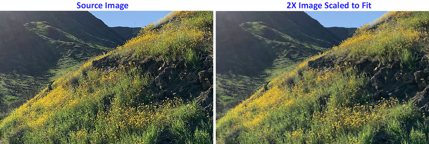 Next, I compared a scaled image to the original. Notice the blurriness in the scaled image. This blurriness increased as larger images were scaled.