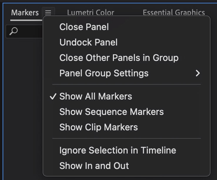 The Marker panel now includes filter options to Show All Markers, Show Sequence Markers, and Show Clip Markers. Choose any one filter to view the markers most relevant to your current work. Select Ignore Selection in Timeline to filter markers regardless of which track items are selected in the timeline. With these behaviors, it’s easier to stay organized and find exactly what you need.