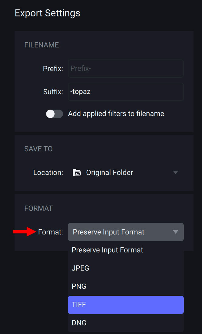 While all of my work is with older TIFF images (both photographs and scans), Topaz Photo AI can also remove noise and process raw images, as well as a variety of other image formats. The screen shot above illustrates removing sensor noise from low-light shots in raw images.